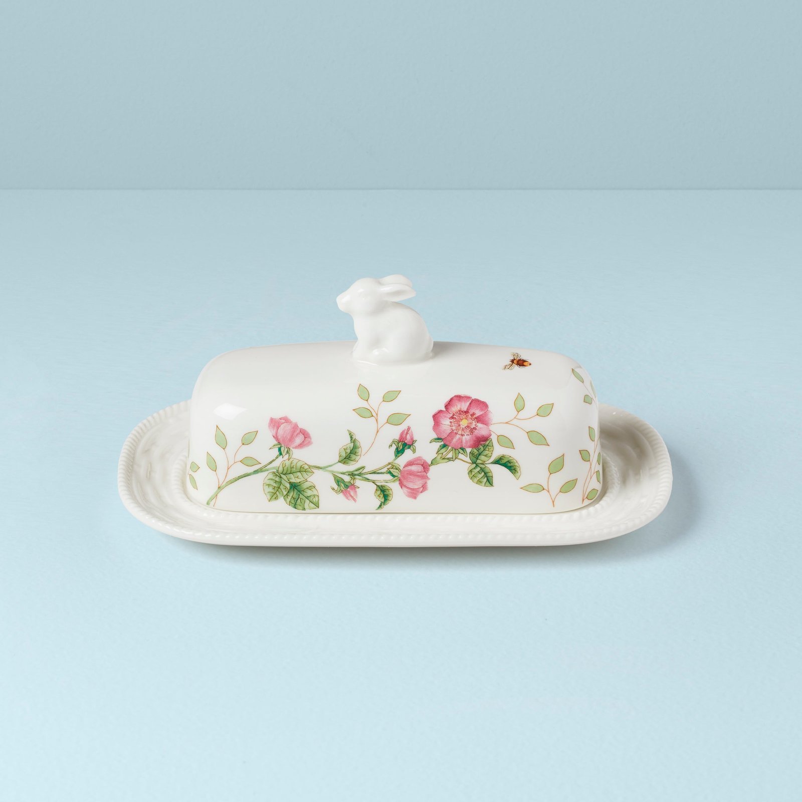 A precious piece from our best-selling Butterfly Meadow collection, this covered butter dish is crafted of durable porcelain and features a little bunny on top, along with our signature, vibrant floral pattern. It’s a one-of-a-kind piece you need for spring and Easter.