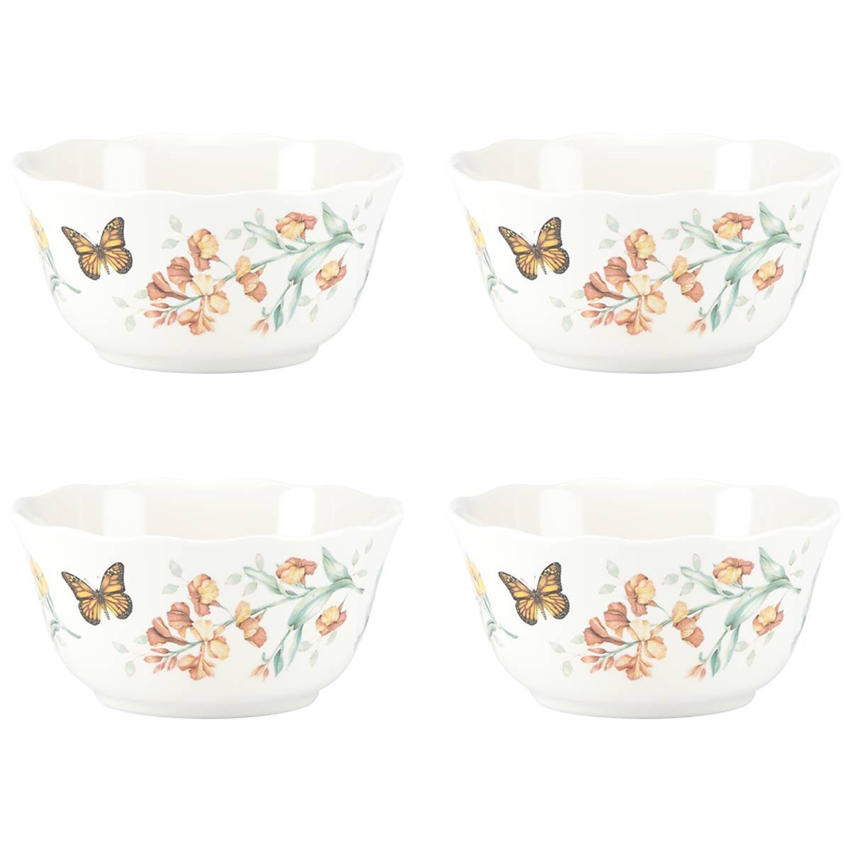 The classic Butterfly Meadow design decorates and shapes the melamine 4-piece all-purpose bowl set with gently scalloped rims and lively garden illustration. Ideal for holding snacks and tabletop serving, this shatterproof, dishwasher-safe set works well outdoors and will serve for many years to come.