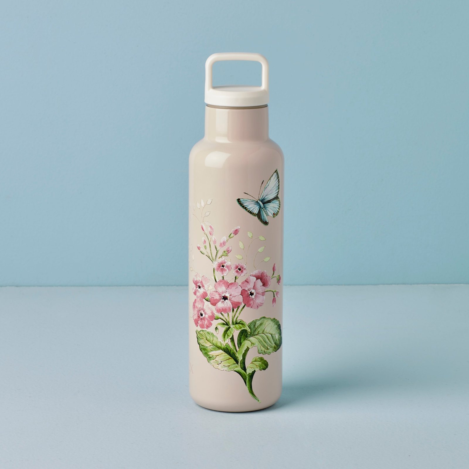 How refreshing! Detailed with a pink Butterfly Meadow motif, this leak-resistant, sweatproof, shatter-resistant water bottle keeps you hydrated and stylish while on the go. Featuring double-wall stainless steel construction and vacuum insulation, it keeps hot drinks hot and cold drinks cold for longer.