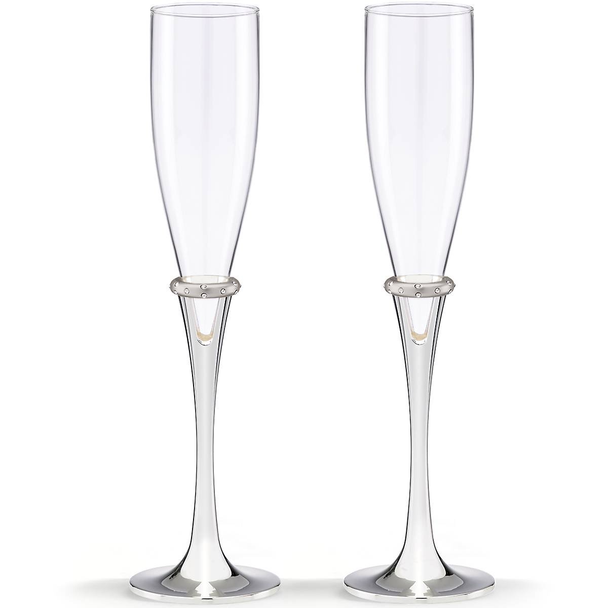 Our beautiful toasting flutes feature luxurious silver plating with gorgeous embedded crystals for a breathtaking look. The design is the height of elegance and it makes the perfect gift for weddings, anniversaries or engagement parties.