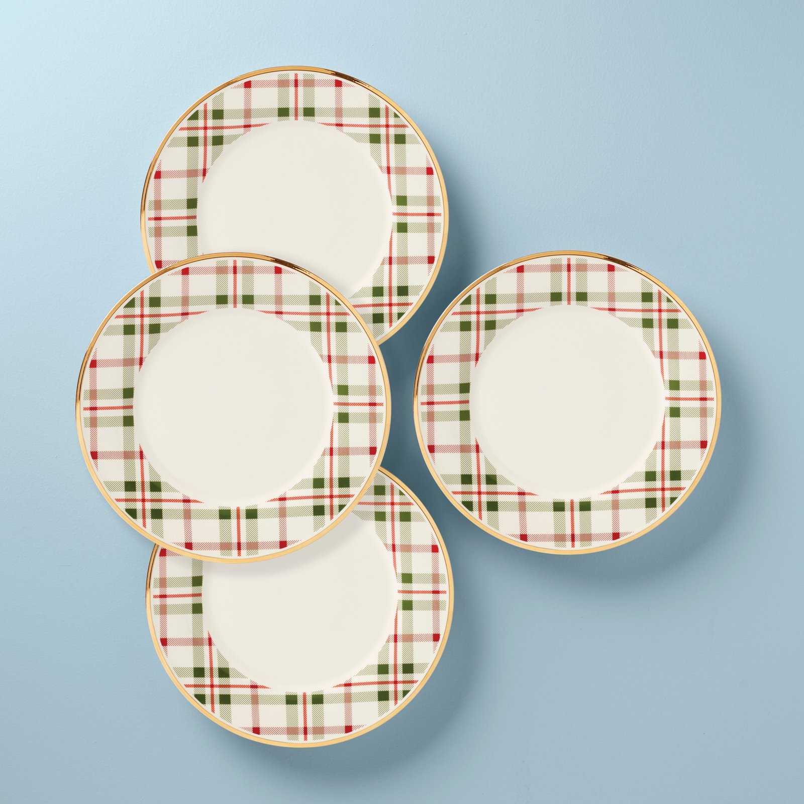For those mad for plaid with a soft spot for tradition, this Holiday Plaid dinner plate set is here to make you the merriest. Made to match our long-adored Holiday pattern, this gold-detailed collection pairs a festive tartan with holly motifs for a design that’s instantly classic.