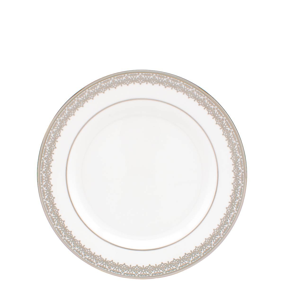 Ideal for enjoying a side dish, the impressive Lace Couture Gold Bread Plate is crafted of durable and pristine white bone china, and is framed by a laced motif that is similar to a rich tapestry. This ornate plate is accented in precious 24-karat gold, and is dishwasher-safe for added convenience.