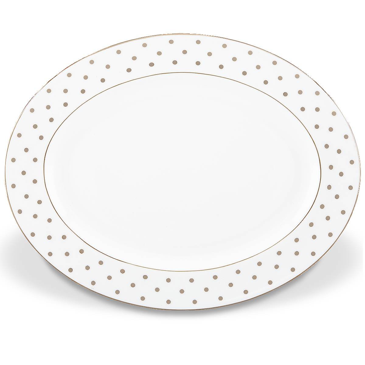 Add a playful dash of polka dots to any meal with our Larabee Road Platinum Collection. From Kate Spade New York, this 16 oval serving platter is crafted from durable white bone china with precious platinum accents, and is dishwasher-safe.