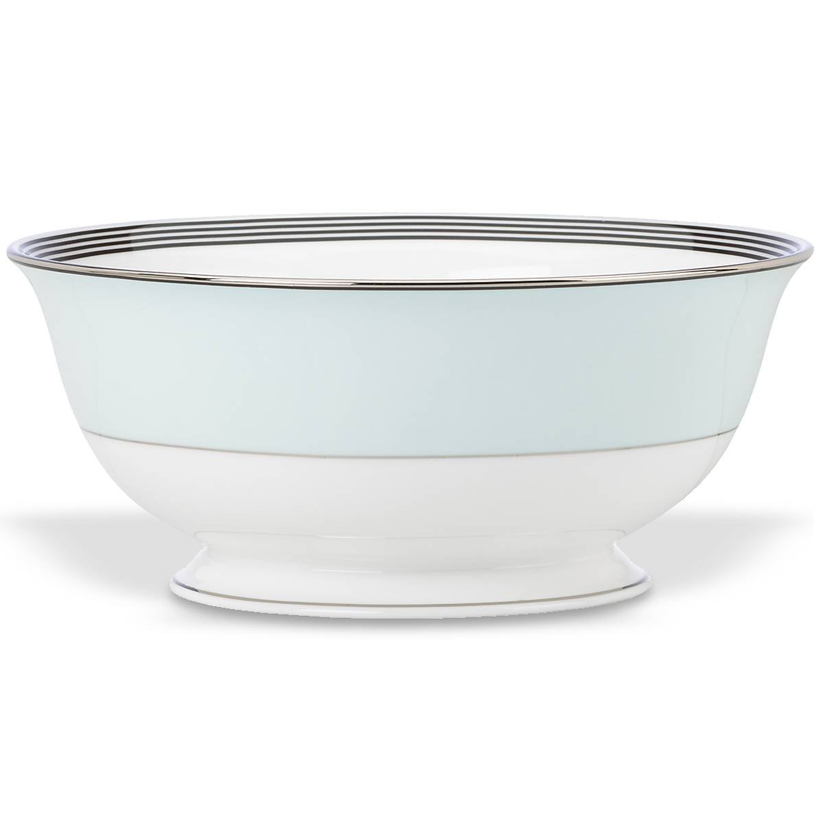 Because every meal — whether it is a multi-course homemade masterpiece or Chinese takeout and cupcakes — deserves a perfectly pretty place setting. Like this classic large serving bowl from the Parker Place Collection, crafted of dishwasher-safe, durable white ceramic porcelain with precious platinum accents. Bon appetit!