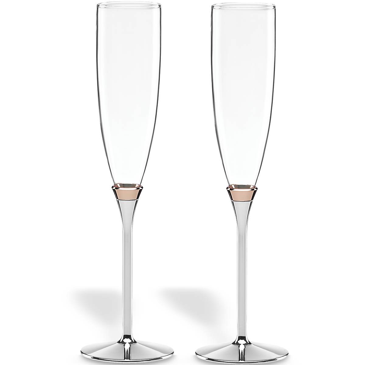Because the special day should be nothing but rosy, the Rosy Glow Collection adds a piece of glam to that day. This 2-piece champagne flute set is crafted from durable metallics with silver-plating.