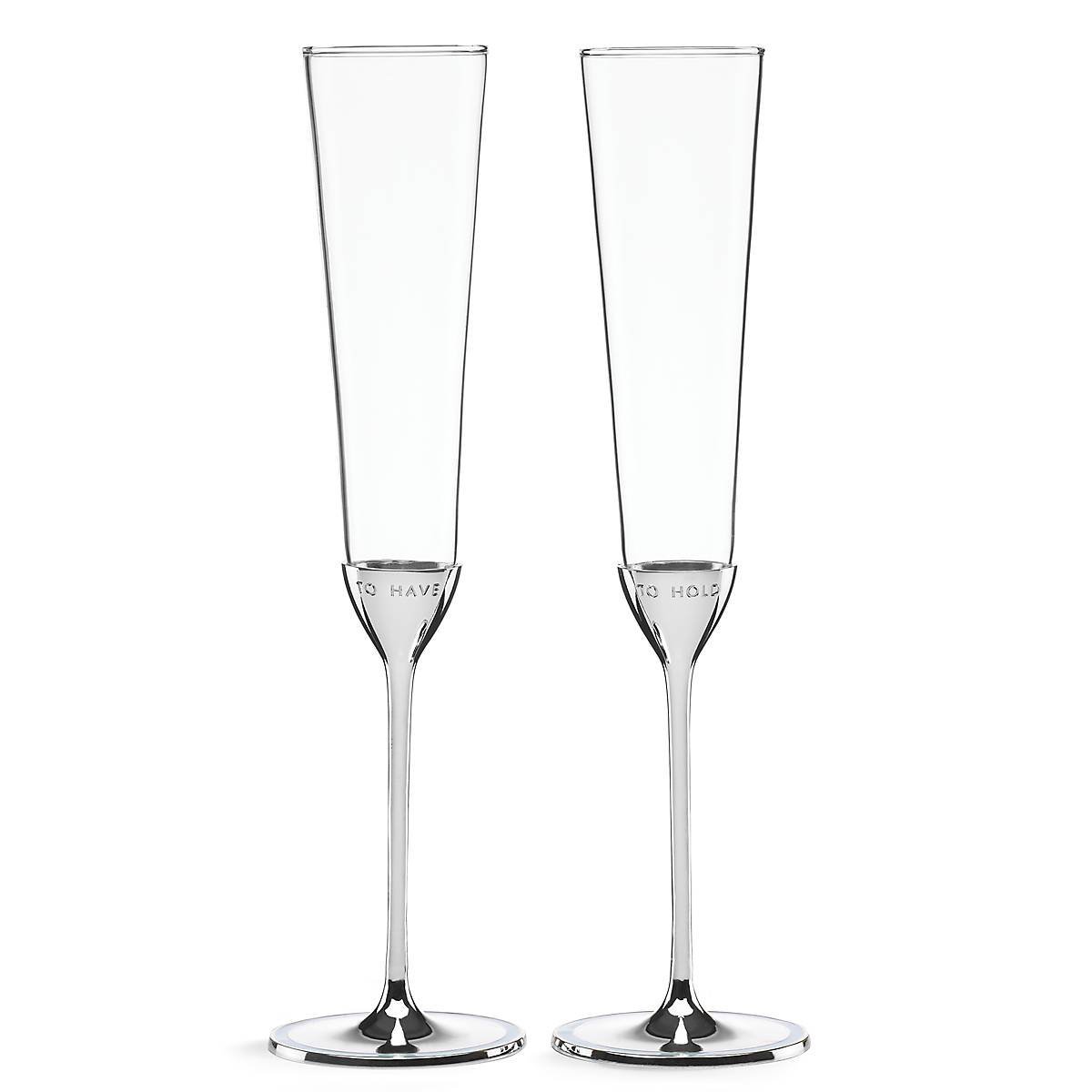 Between the old, new, borrowed, and blue items collected for the big day, are the memories that will last a lifetime. From dessert sets to frames for your favorite photos, the designers’ thoughts were on the happily ever after when creating the keepsakes in the Take the Cake Collection. This champagne flute set is crafted of elegant silverplate and glass, and features enamel details along the sides.
