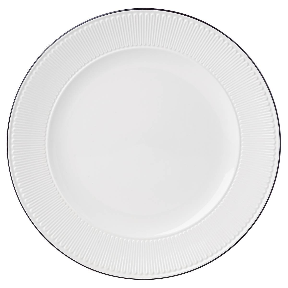 Grosgrain detailing, rich black trim, and a crisp white finish highlight this chic dinnerware from Kate Spade New York. Crafted from durable ironstone, the York Avenue Dinner Plate is microwave and dishwasher-safe.